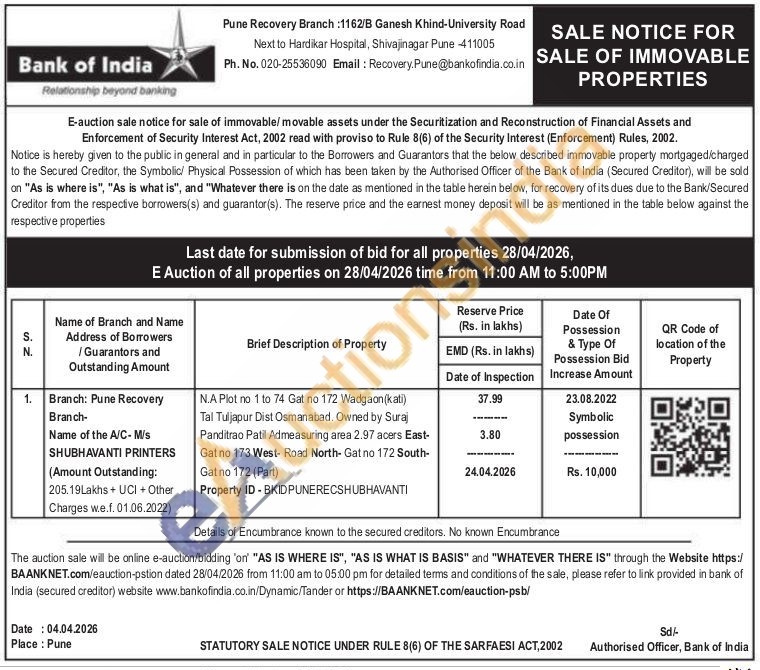 N.A Plot no 1 to 74 Gat no 172 Wadgaon(kati) Tal Tuljapur Dist Osmanabad. Owned by Suraj Panditrao Patil Admeasuring area 2.97 acers East-Gat no 173 West- Road North-Gat no 172 South-Gat no 172 (Part)