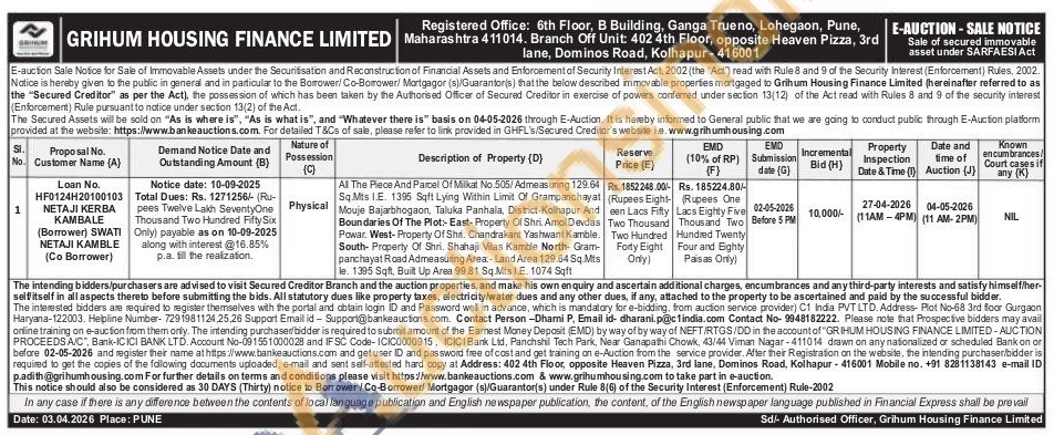 Mouje Bajarbhogaon, Taluka Panhala, District-Kolhapur And All The Piece And Parcel Of Mikat No.505/Admeasuring 129.64 Sq.Mis IE. 1395 Sqft Lying Within Limit Of Grampanchayat Boundaries Of The Plot:- East-Property Of Shri. Amol Devdas Powar. West-Property Of Shri. Chandrakant Yashwant Kamble. South- Property Of Shri. Shahaji Vilas Kamble North- Gram-panchayat Road Admeasuring Area:-Land Area 129.64 Sq.Mis le. 1395 Sqft. Built Up Area 99.81 Sq.Mts 1.E. 1074 Sqft