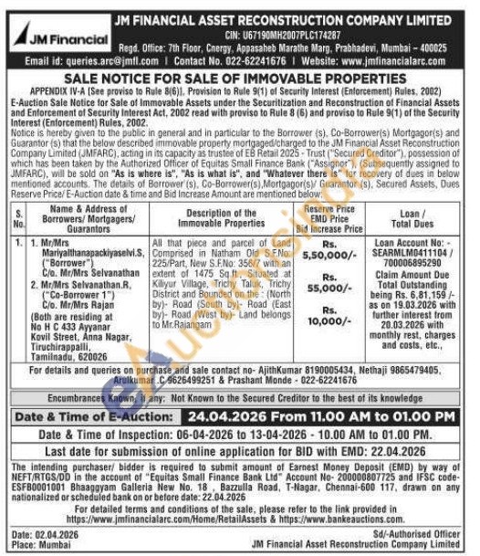 All that piece and parcel of Land . Comprised in Natham Old S.F.No: 225/Part, New S.F.No: 356/7 with an extent of 1475 Sq.ft. Situated at Killiyur Village, Trichy Taluk, Trichy. District and Bounded on the (North by) Road (South by) Road (East by) Road (West by)- Land belongs to Mr.Rajangam