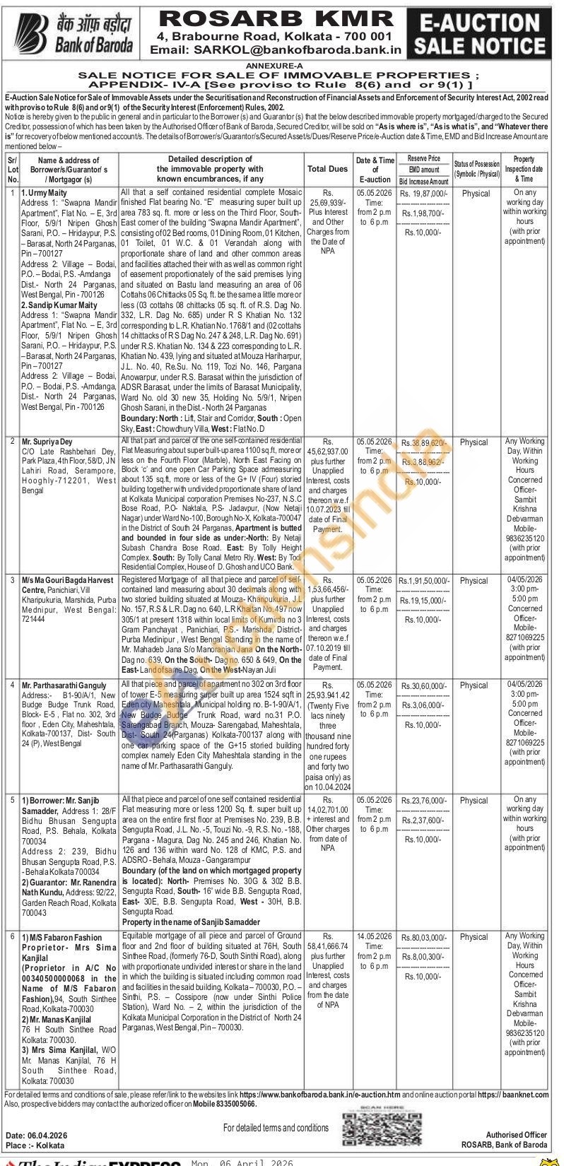 Equitable mortgage of all piece and parcel of Ground floor and 2nd floor of building situated at 76H, South Sinthee Road, (formerly 76-D, South Sinthi Road), along with proportionate undivided interest or share in the land in which the building is situated including common road and facilities in the said building, Kolkata-700030, P.O. Sinthi, P.S. Cossipore (now under Sinthi Police Station), Ward No. 2, within the jurisdiction of the Kolkata Municipal Corporation in the District of North 24 Parganas, West Bengal, Pin-700030
