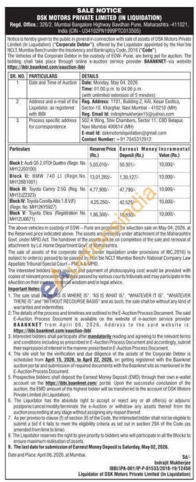 Liquidation E-Auction Car Auction in Mumbai City, Mumbai