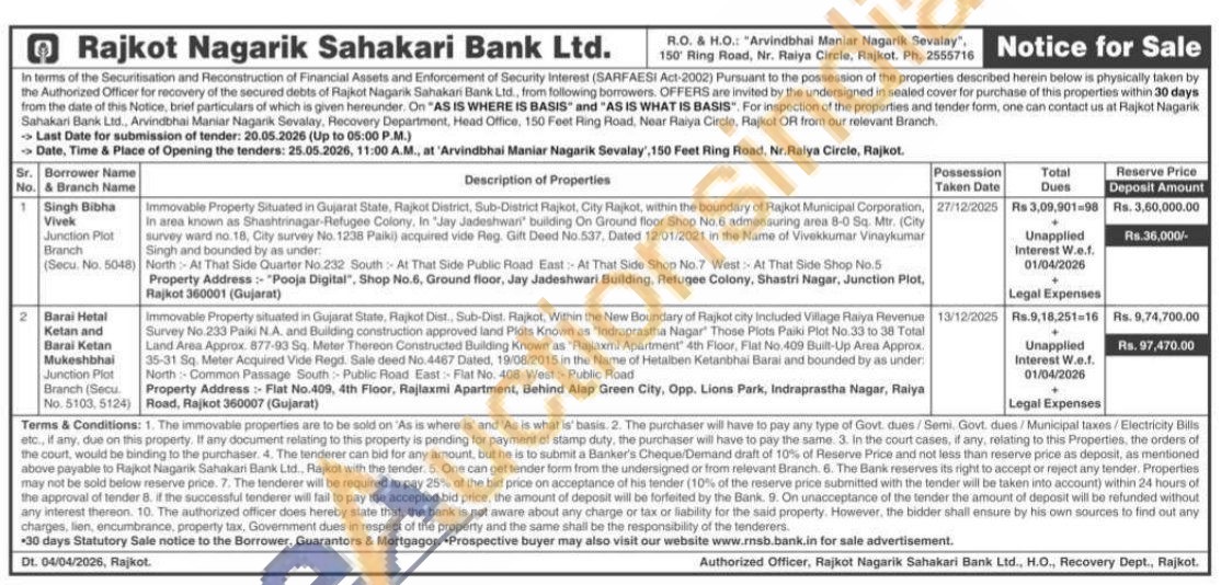 Immovable Property Situated in Gujarat State, Rajkot District, Sub-District Rajkot, City Rajkot, within the boundary of Rajkot Municipal Corporation, In area known as Shashtrinagar-Refugee Colony, In "Jay Jadeshwari' building On Ground floor Shop No.6 admeasuring area 8-0 Sq. Mtr. (City) survey ward no. 18, City survey No. 1238 Paiki) acquired vide Reg. Gift Deed No.537, Dated 12/01/2021 in the Name of Vivekkumar Vinaykumar Singh and bounded by as under: North At That Side Quarter No.232 South At That Side Public Road East At That Side Shop No.7 West At That Side Shop No.5 Property Address: "Pooja Digital", Shop No.6, Ground floor, Jay Jadeshwari Building, Refugee Colony, Shastri Nagar, Junction Plot, Rajkot 360001 (Gujarat)
