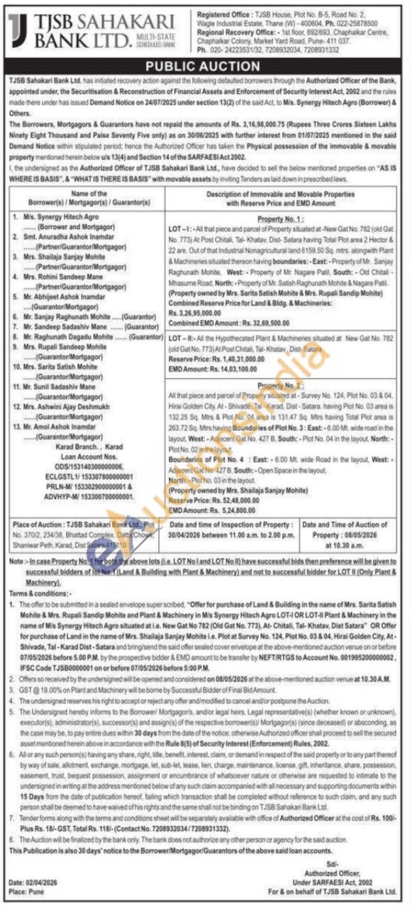 LOT--Al the Hypothecated Plan & Machineries stated at New Gat No. 762 oldGaN 773) APCall Tal Khater, Died-Satara Reserve Price: Rs. 1,40.31.000.00