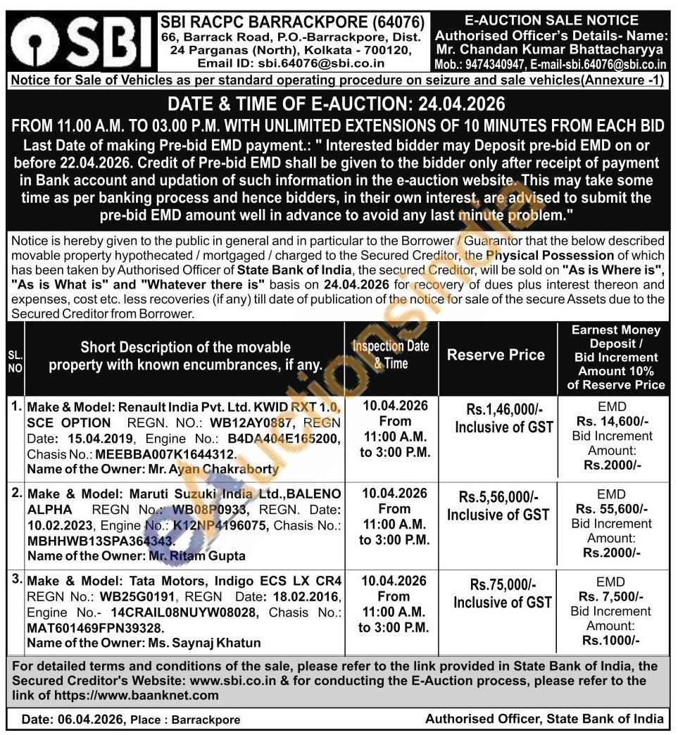 Authorised Officer's Details- Name: Mr. Chandan Kumar Bhattacharyya Mobile No : 9474340947