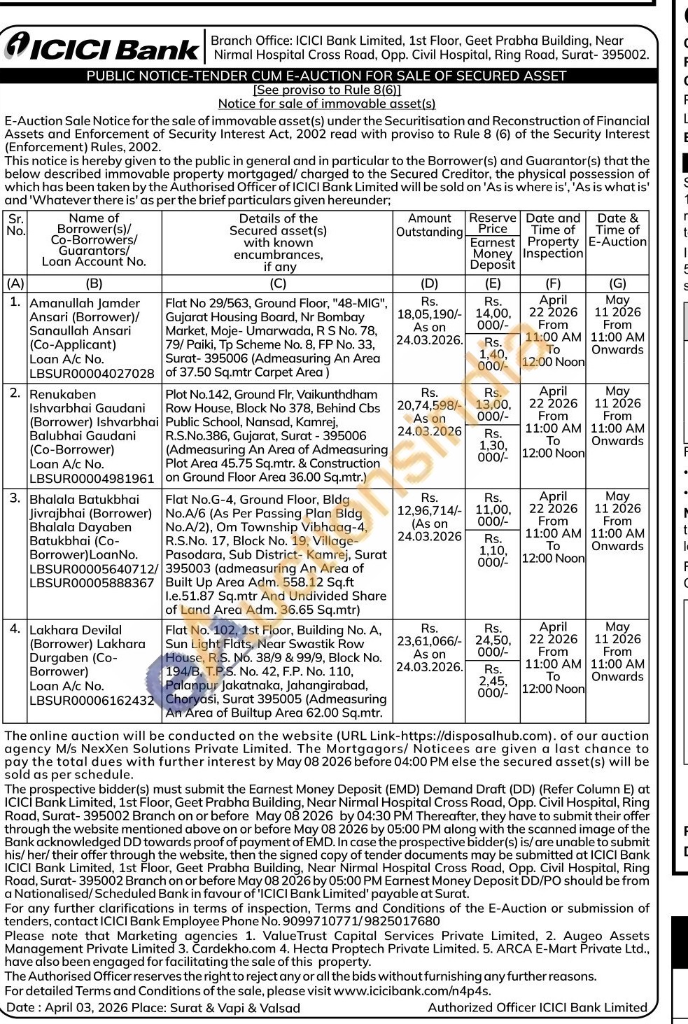 Flat No. 102, 1st Floor, Building No. A, Sun Light Flats, Near Swastik Row House, R.S. No. 38/9 & 99/9, Block No. 194/B, T.P.S. No. 42, F.P. No. 110, Palanpur Jakatnaka, Jahangirabad, Choryasi, Surat 395005 (Admeasuring An Area of Builtup Area 62.00 Sq.mtr