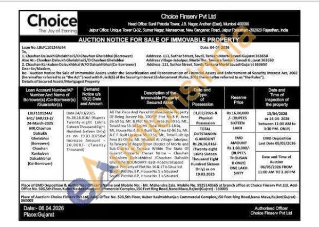 All The Piece And Parcel Of Immovable Property Of Being Survey No. 100/IP Plut No. P, Arms 26-59:50. Mr. & Plot No.9 P, Area 26.59 sq. M Total Area 53-1854 Mt. Total Area 53-1854 Mt. House No 4,61 Built Up Area 47-965 &RF. Built Up Area 38-1354. Mr, Total Built Up Area 85-0954. Mt. Sibated At Village-Jabalpur Ta Tankare of Registration District of Morbi and Sub-District of Tarikara Within The State Of Gujarat Property Daner Name Chauhan Kankuben Dabakhbhal Chavhan Dalsukh Ghelabhai BOUNDARY East Roadis Situated Wirst-Property of Pot No. 16-17 Shutted North-Plot No.9 House No Sis Situated South Plot he BP House No. 3 is Situati