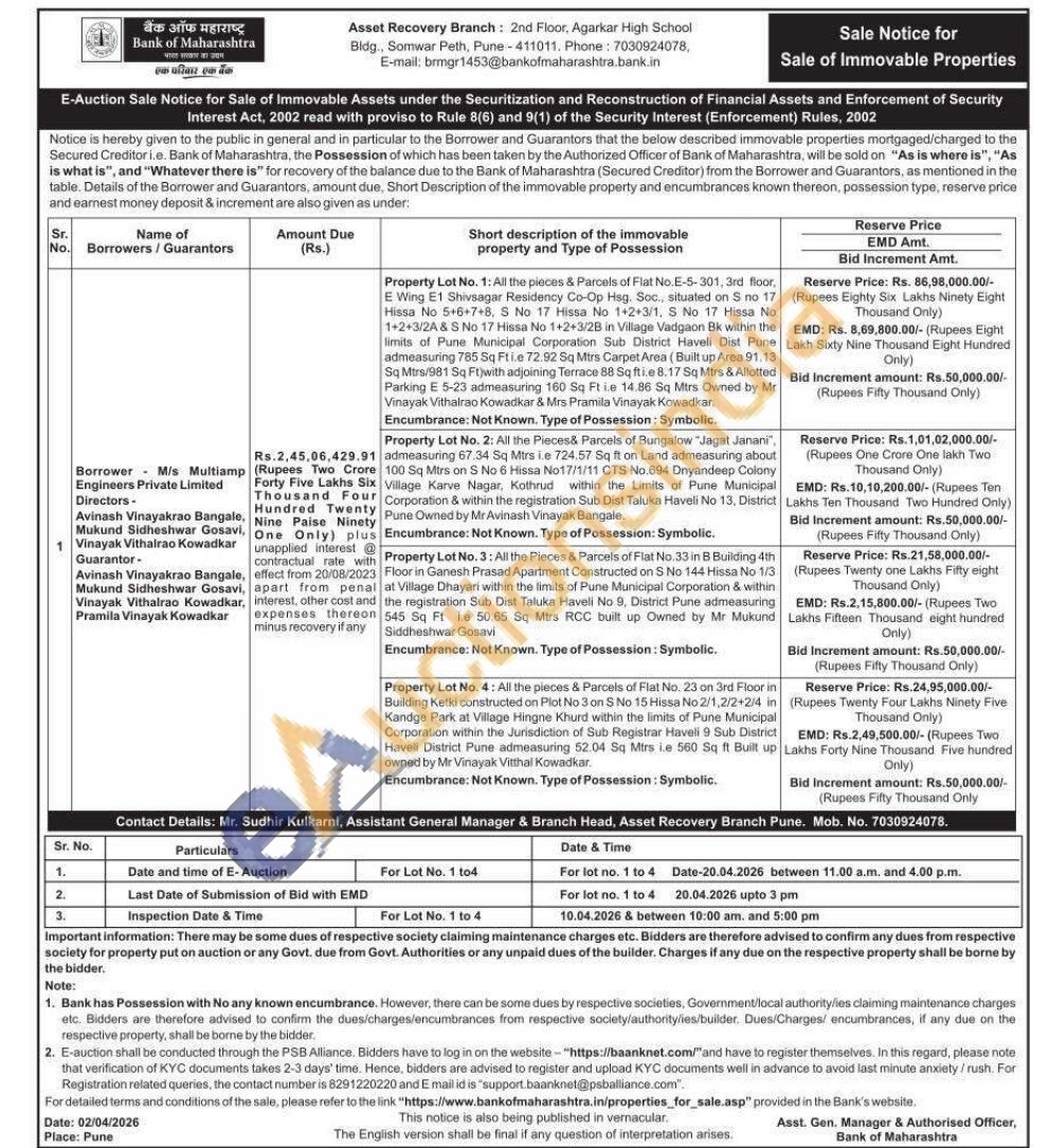 Contact no 7030924078, E-mail: brmgr1453@bankofmaharashtra.bank.in
